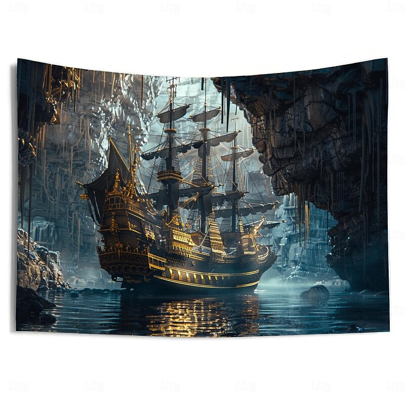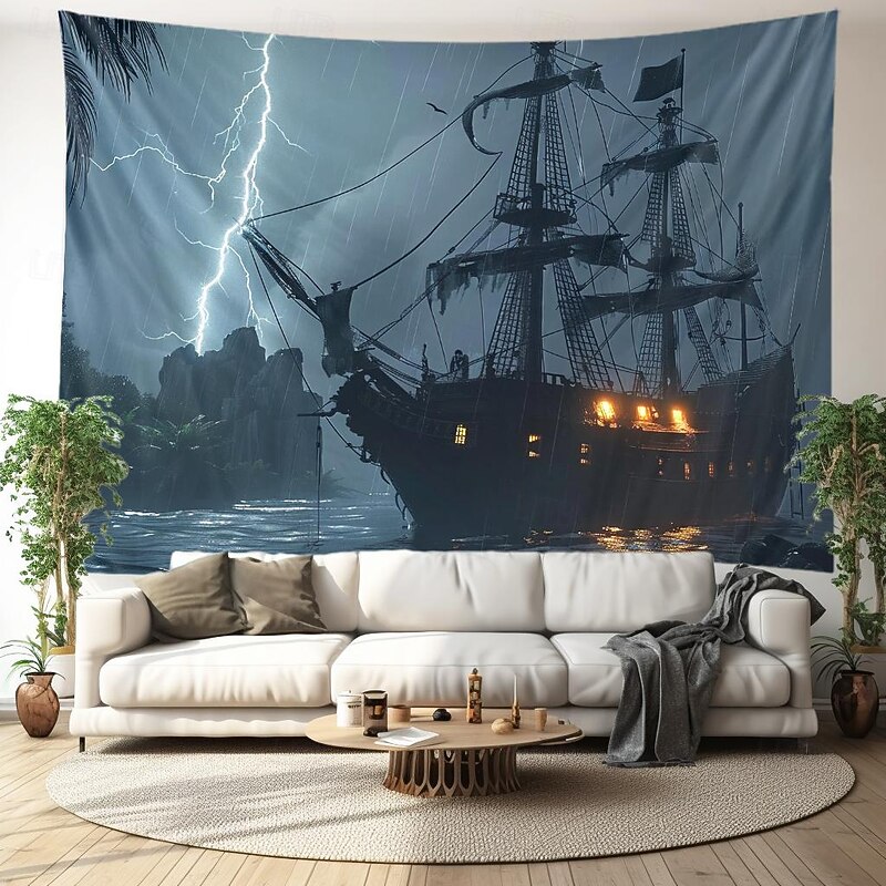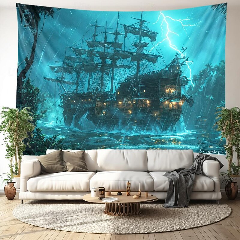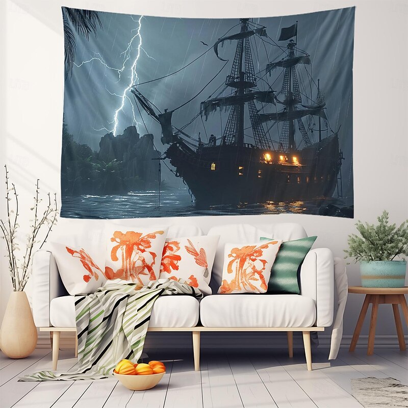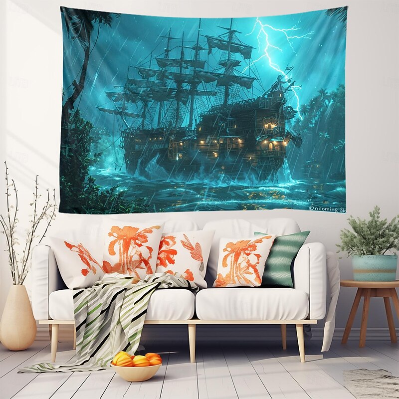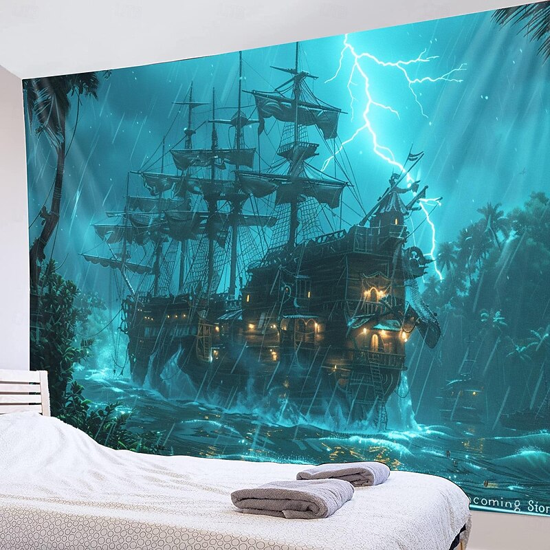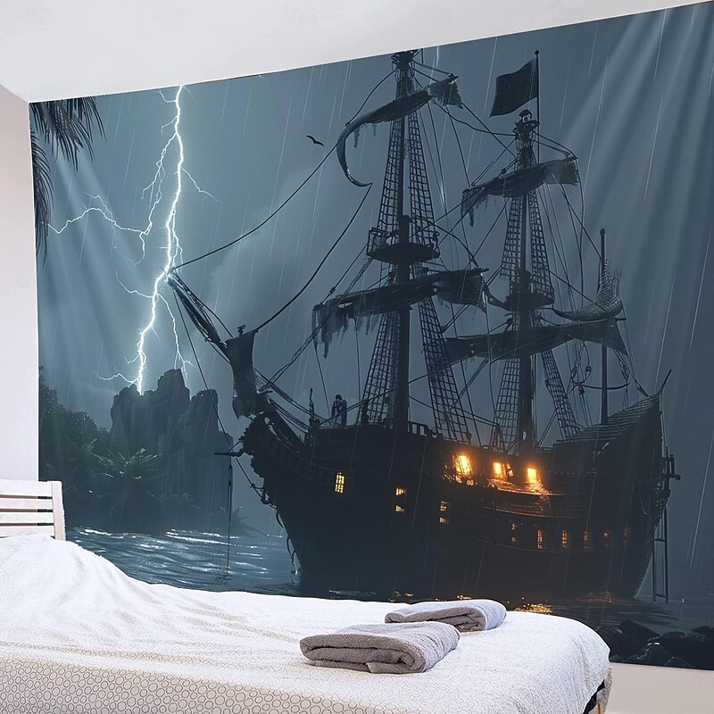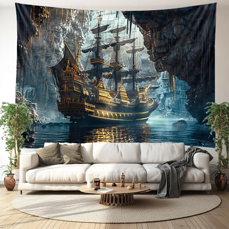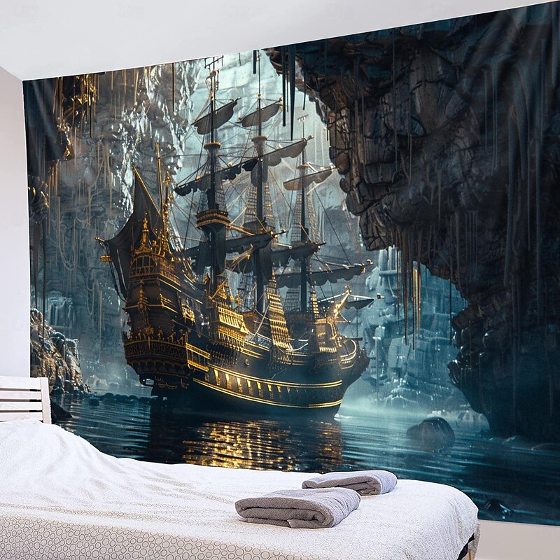 HOT ! Pirate Ship Hanging Tapestry Wall Art Large Tapestry Mural Decor Photograph Backdrop Blanket Curtain Home Bedroom Living Room Decoration