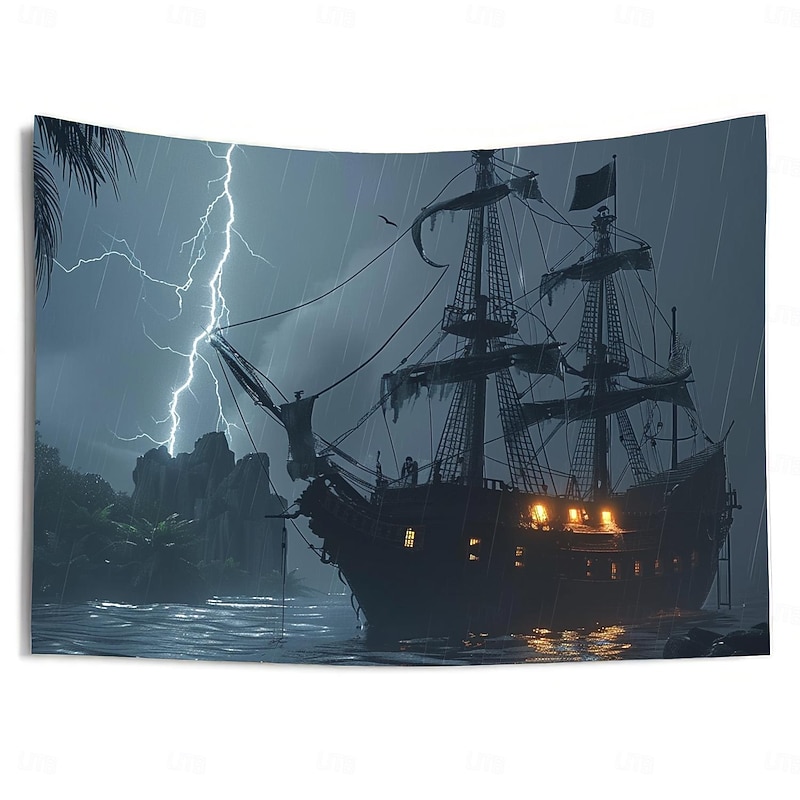 Pirate Ship Hanging Tapestry Wall Art Large Tapestry Mural Decor Photograph Backdrop Blanket Curtain Home Bedroom Living Room Decoration 9