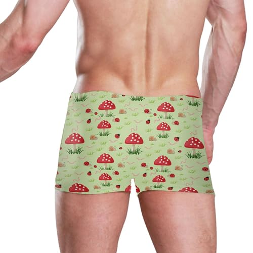 sought-after ! Red Mushroom Snails Ladybug Mens Swim Trunk Swimwear Bathing Suit Swim Brief Square Leg Board Short S B0405155