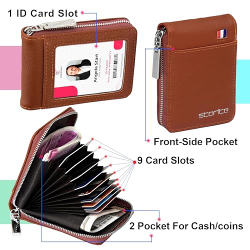 PU Leather 9 Slot Vertical Credit Debit Card Holder Money Wallet Zipper Coin Purse for Men Women - Lightbrown (11.5 x 1.75 x 8 cm) 7