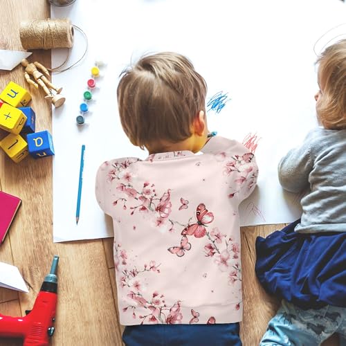 JUNZAN Pink Cherry Flowers Blossom Retro Little Girls Sweatshirts Hoodies Crewneck Kids Pullover Hoodie Camping 4T 2
