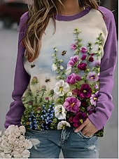 More information about Women's Pullover Sweatshirt Floral Fashion Casual Long Sleeve Crew Neck Regular Tops Home Street Dailywear Print Purple Fuchsia Violet Spring Fall