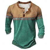 More information about Men's Graphic Geometric Ethnic Henley Shirt Tee Long Sleeve Vintage Fashion Designer Outdoor Casual Daily Fall Spring & Fall Deep Green Dark Brown Milk Green Henley Henley T-Shirt