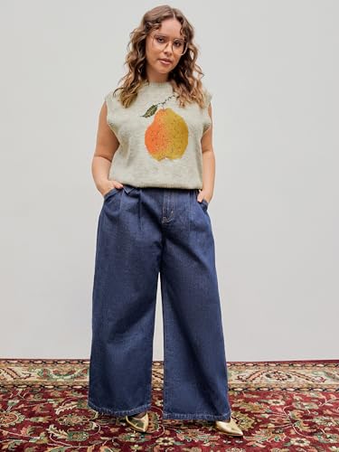HOT ! CIDER Knit Round Neckline Pear Graphic Wool-Blend Vest Curve & Plus