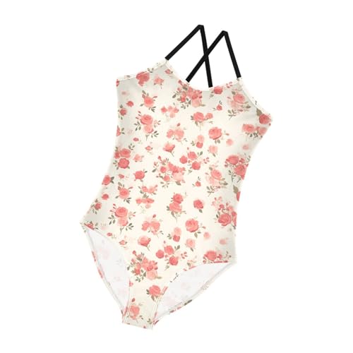 KLL Seamless Pattern Red Roses Girls' 1 Piece Bathing Suit Beach Swimwear Adjustable Strap Cute 6