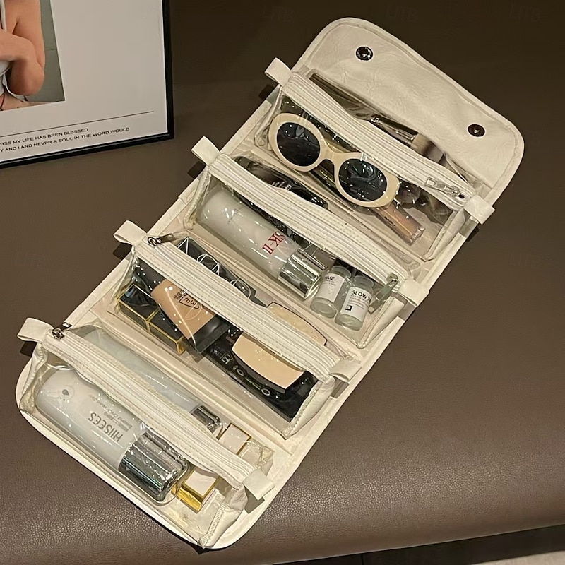 Highlights 1. DETACHABLE 4-IN-1 DESIGN This innovative cosmetic bag features a detachable 4-in-1 design, allowing you to use each compartment separately. Perfect for personalizing your storage needs—whether you're at home or on the go! 2. SPACIOUS & ORGANIZED STORAGE This large-capacity bag easily holds your makeup, brushes, and toiletries. Keep everything neatly organized, making packing for your travels stress-free and efficient. 3. FULLY WATERPROOF Designed with a fully waterproof exterior, this bag offers reliable protection for your cosmetics in bathrooms and humid environments. Travel worry-free knowing your essentials are safe from water damage. 4. PREMIUM MATERIALS & ELEGANT DESIGN Crafted from high-quality PU leather and sturdy hardware, this bag combines durability with sophistication. Its luxurious feel and stylish design add a touch of class to your travel essentials. 5. PRODUCT SPECIFICATIONS Material: PU Leather Size: 14 24 14cm Package Includes: 1 x Portable Waterproof Cosmetic Bag