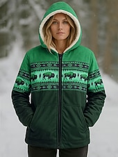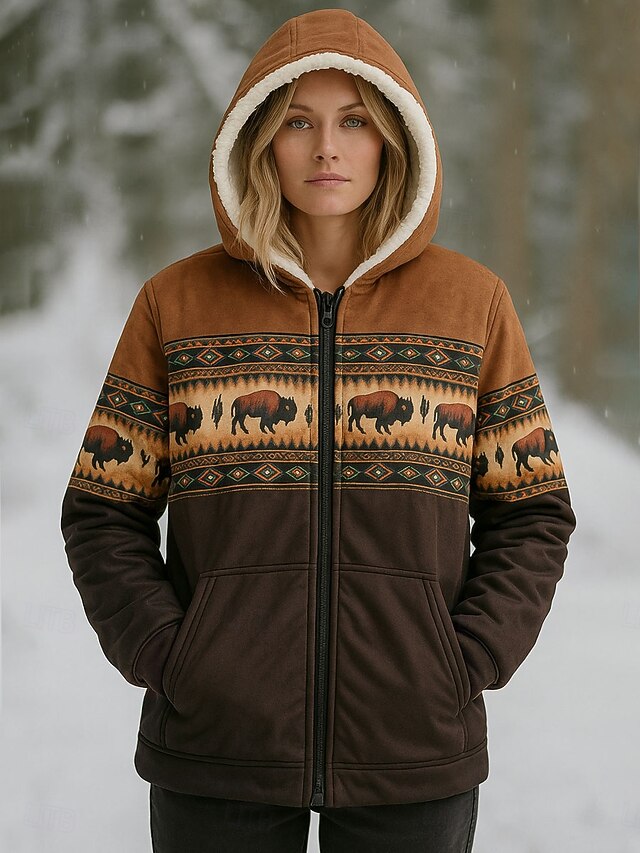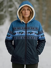 More information about Women's Winter Coat Warm Zipper Pocket Print Fashion Casual Animal Street Casual Regular Hooded Regular Fit Long Sleeve Outerwear Blue Purple Green Spring Fall