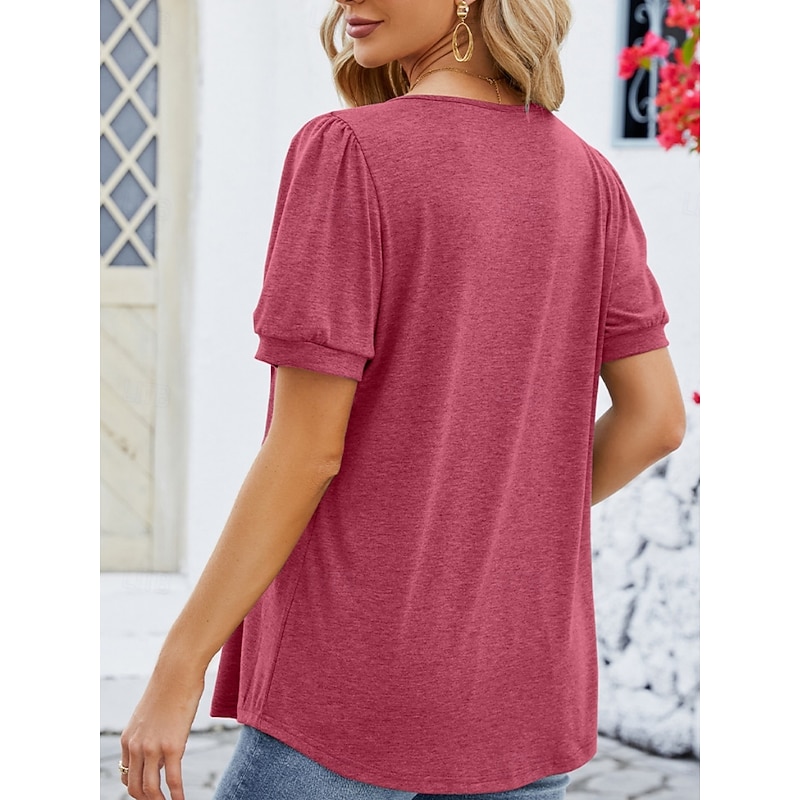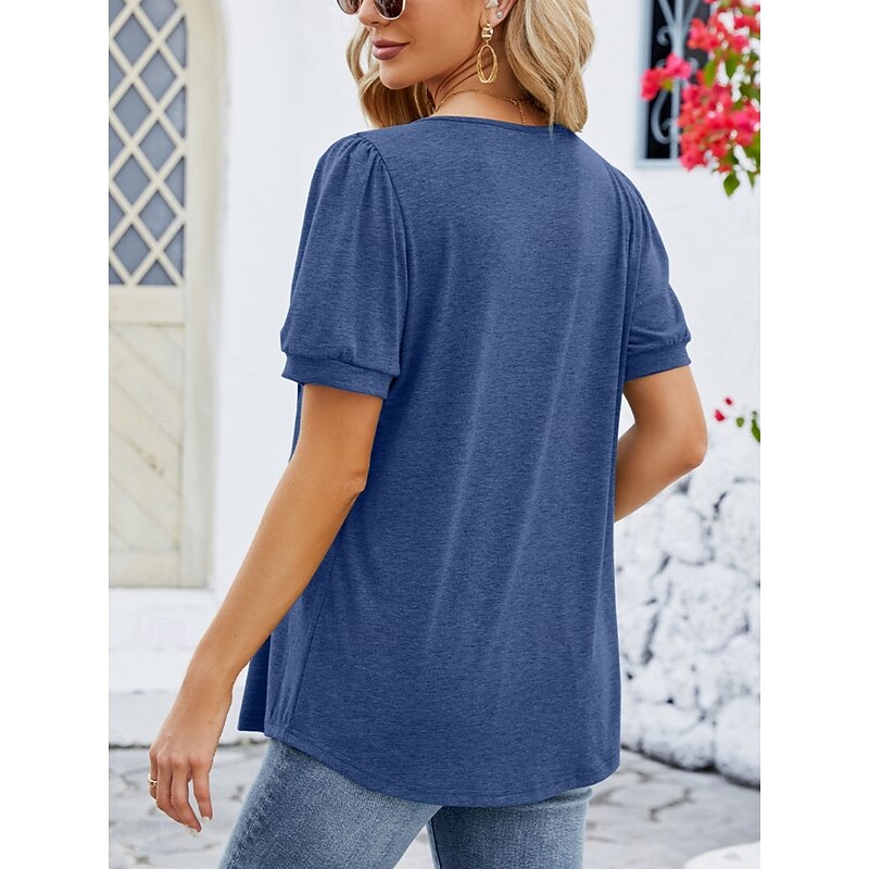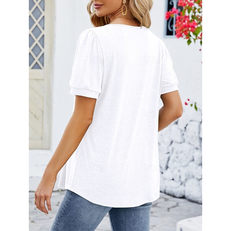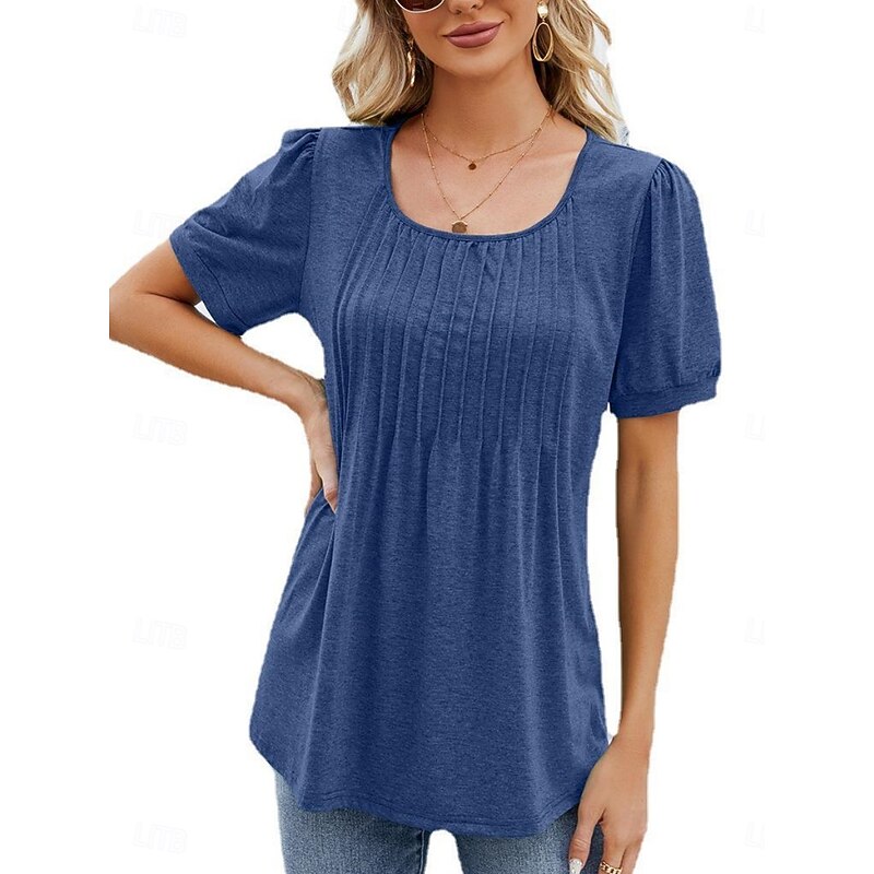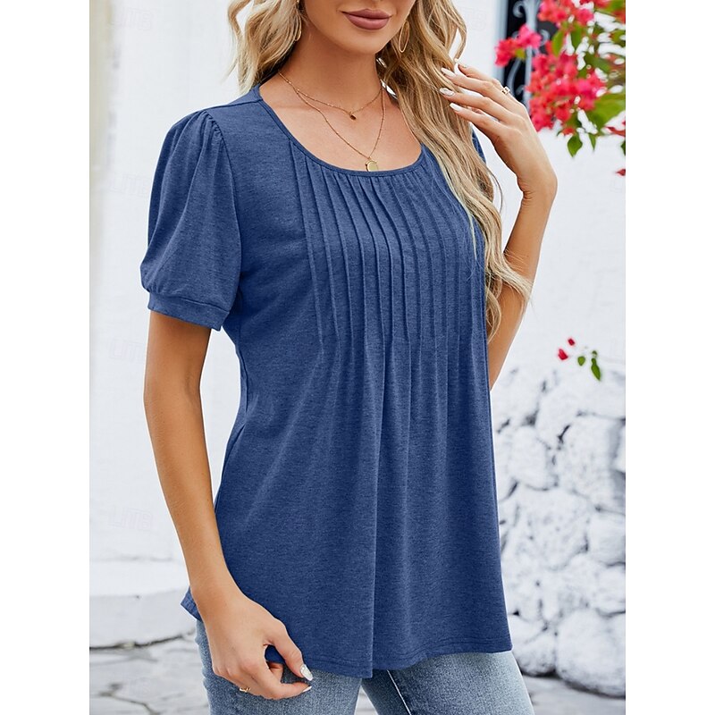 More information about Women's Shirt Blouse Solid Color Basic Casual Short Sleeve Crew Neck Regular Tops Daily Ruched White Wine Navy Blue Summer Spring