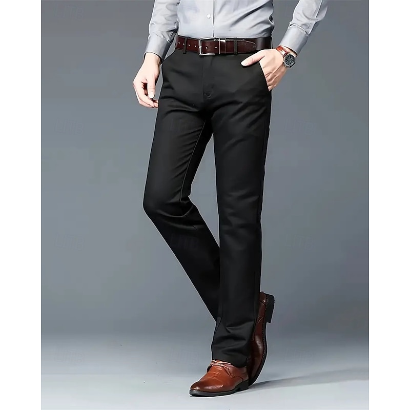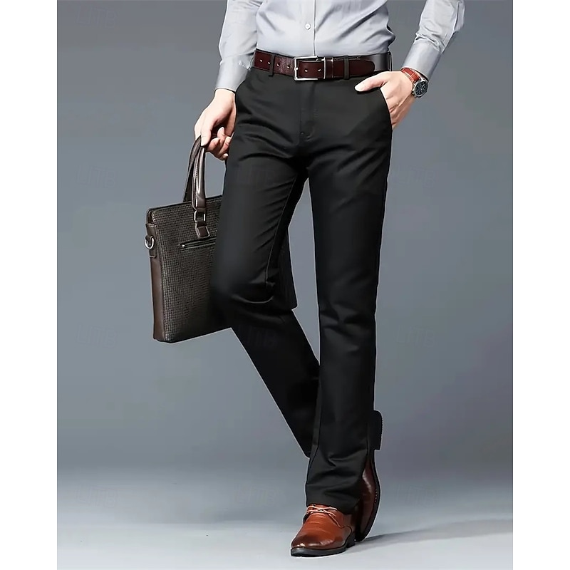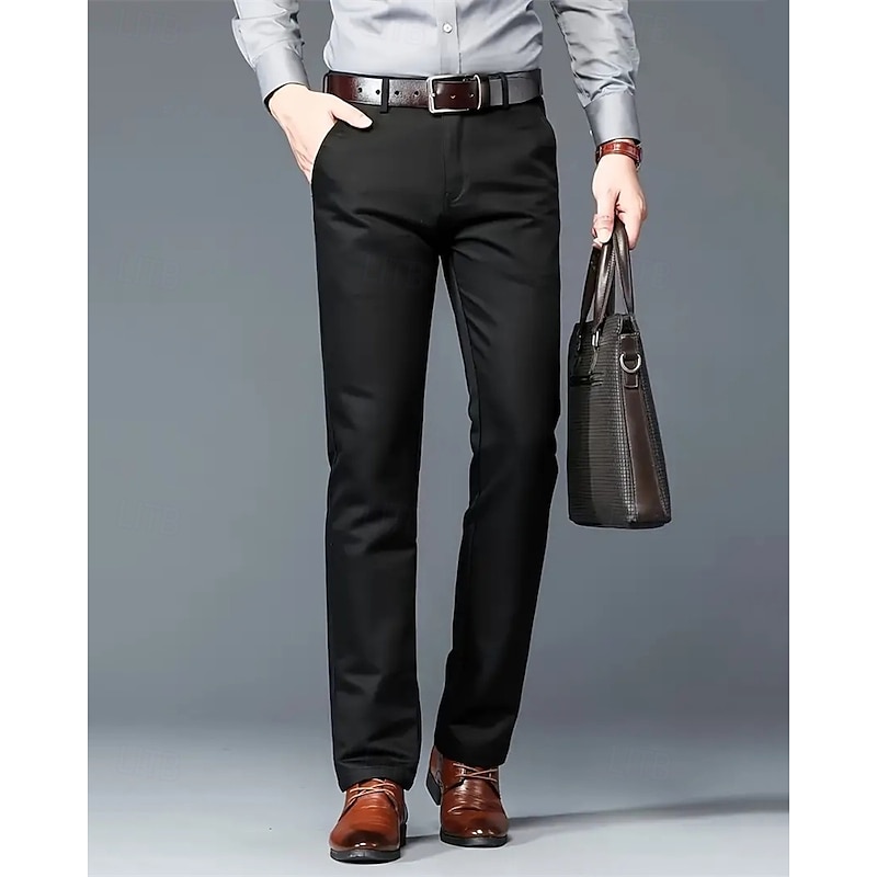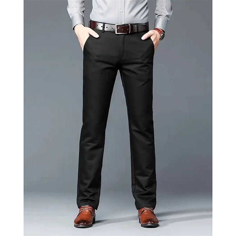 More information about Men's Dress Pants Trousers Chinos Buttons Pocket Solid Colored Comfort Formal Party Work Fashion Classic Style Black White Micro-elastic