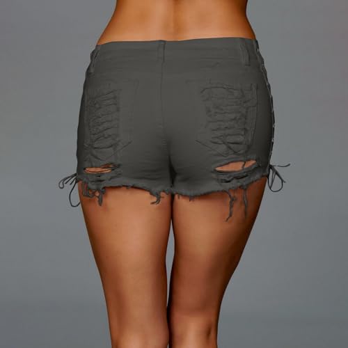 • Origin: 【Features】: Sexy Denim Shorts,Stretchy Distressed Cut Off Ripped Jean Shorts.Side Lace up Bandage, frayed raw hem