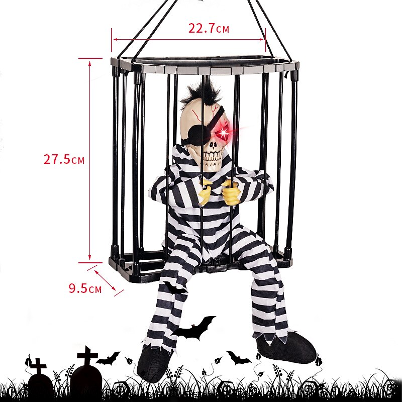 HOT ! Halloween Decoration Screaming Animated Halloween Decor Prop with Motion Sensor Scary Skull Cage Prisoner Haunted House Decor Spooky Hanging Ghost Light Up Eyes Decorations Set
