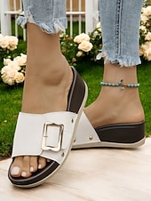 More information about Chic Wedge Slide Sandals for Women - Comfortable Casual Wear with Stylish Buckle and Rivet Details, Perfect for Leisure or Weekend Outings