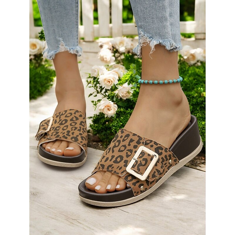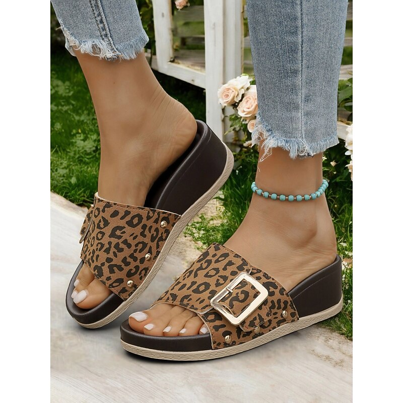 HOT ! Chic Wedge Slide Sandals for Women - Comfortable Casual Wear with Stylish Buckle and Rivet Details, Perfect for Leisure or Weekend Outings