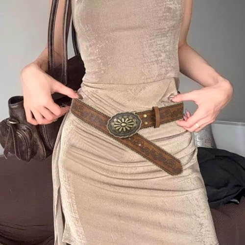 Women's Western Genuine Leather Belt Vintage Buckle Cowgirl Style Brown 5