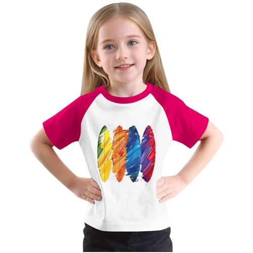 Girls Rainbow Print Cute Summer Tops Color Block Loose Raglan Crewneck T-Shirts Kids Basic Short Sleeve Tees for 3-14 Years 7