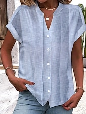More information about Women's Blouse V Neck Button Down Blouse Graphic Striped Vintage Stylish Ethnic Short Sleeve Notched Neck Regular Tops Daily Buttons Print Light Blue Summer Spring