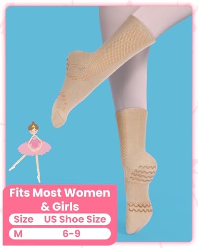 • Supportive Arch and Padded Heel: these dance non slip ballet socks come with an enhanced compression arch, designed to contour the foot and show off the dancer's footline; An extra heel pad is added to safeguard the bones, providing reliable support
