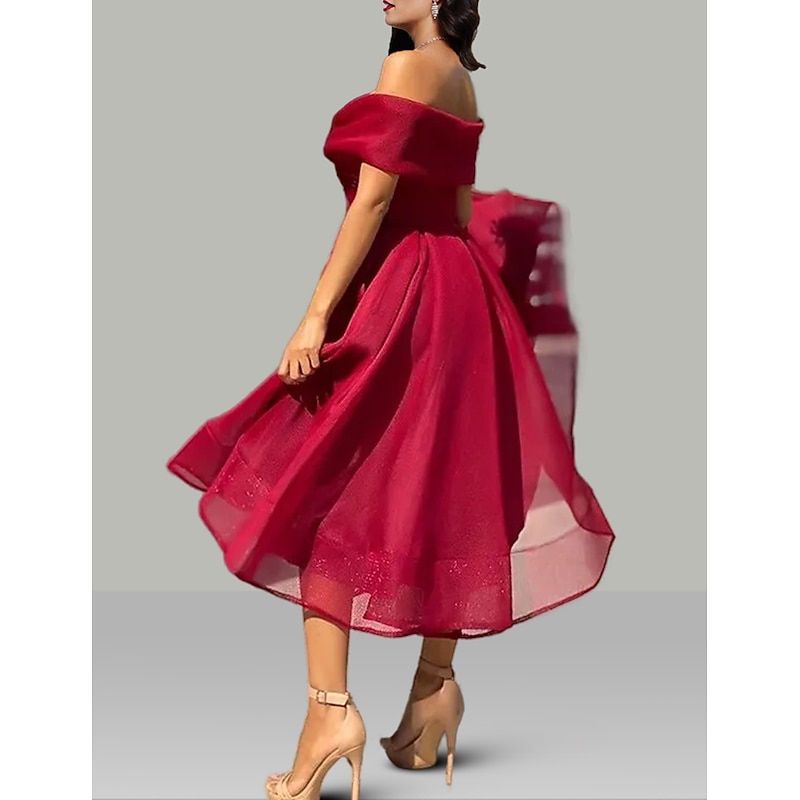 More information about A-Line Prom Dresses Vintage Dress Wedding Guest Summer Tea Length Sleeveless Off Shoulder Organza Backless with Ruched Dresses