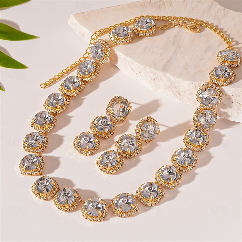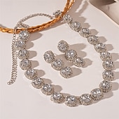 Why Choose Jewelry Set Two-piece Suit Silver Cubic Zirconia Chrome 1 Necklace Earrings Women's Elegant Vintage Fashion Cute Vintage Style timeless Geometric Jewelry Set For Wedding Party Special Occasion?