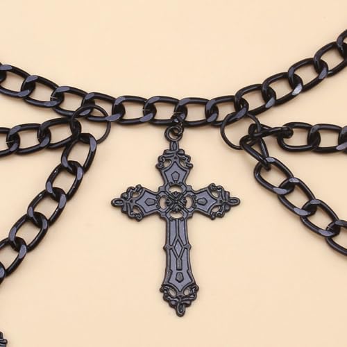 Silver Cross Waist Chain Belt for Women Adjustable Black Body Chain Belt Trendy Tassel Cross Belly Chain Belt Long Metal Link Chain Belt Punk Body Jewelry (layered black) 5