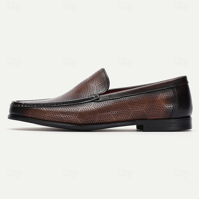 Men's Premium Cowhide Perforated Leather Loafers - Breathable Slip-On Shoes for Business and Casual Wear 1