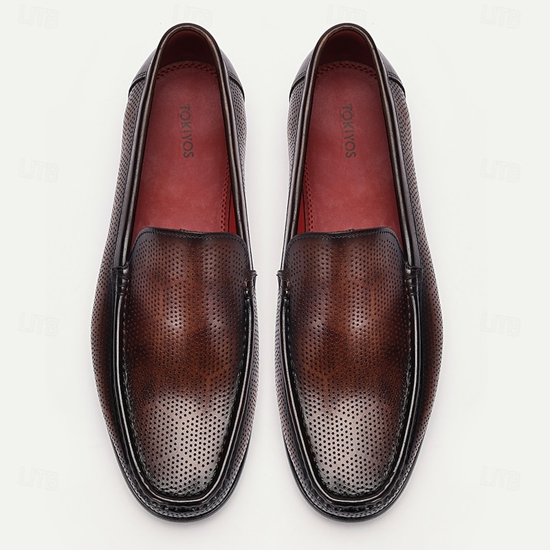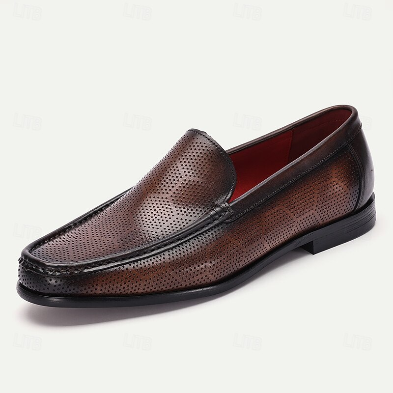 More information about Men's Premium Cowhide Perforated Leather Loafers - Breathable Slip-On Shoes for Business and Casual Wear