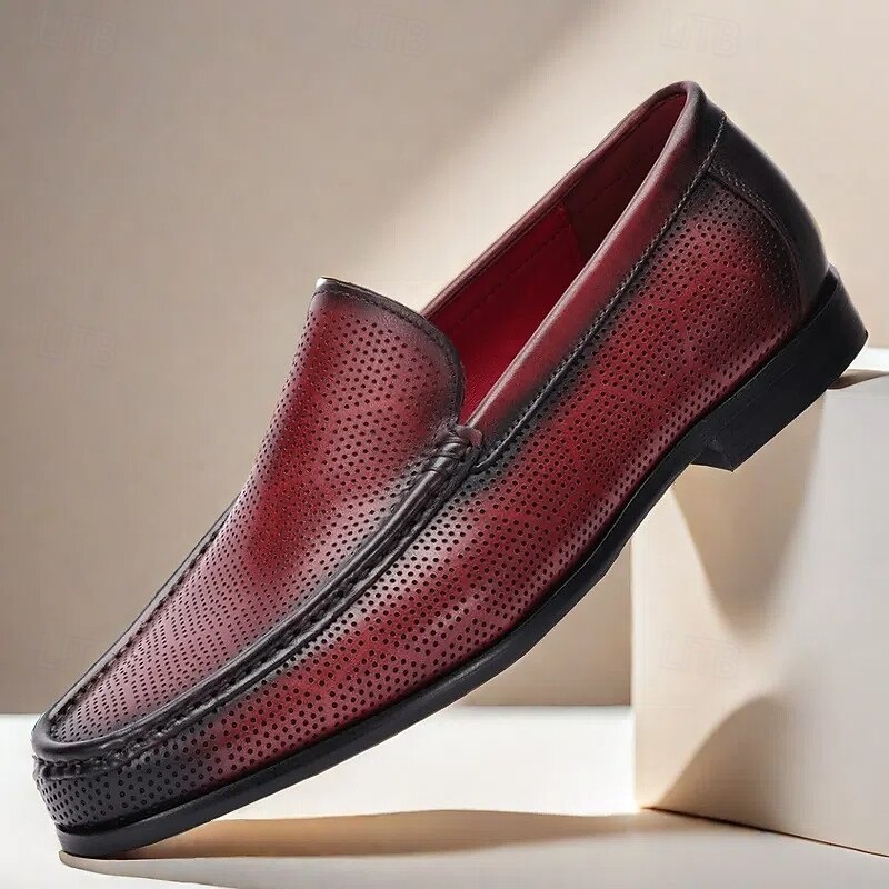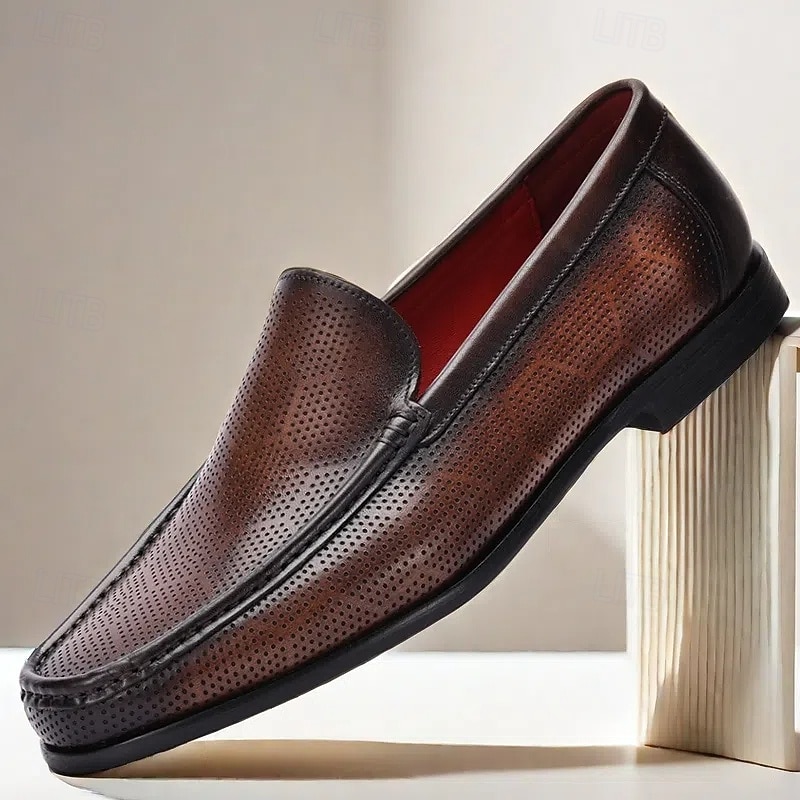 HOT ! Men's Premium Cowhide Perforated Leather Loafers - Breathable Slip-On Shoes for Business and Casual Wear