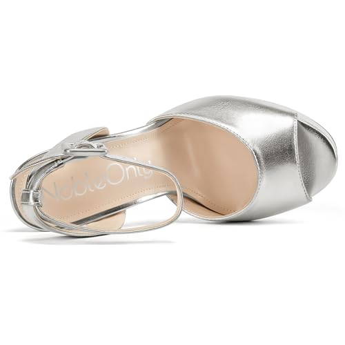 HOT ! NobleOnly Platform Heels for Women Platform Sandals Chunky Heel Peep Open Toe Ankle Strap Sandals Wedding Party Prom Shoes 5.9 Inches Heels