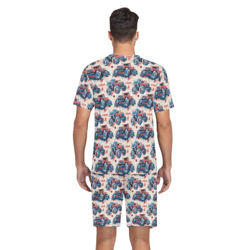 Monster Truck Men’s Pajama Sets Short Sleeve Lounge Wear with Elastic Waistband and Drawstring 4