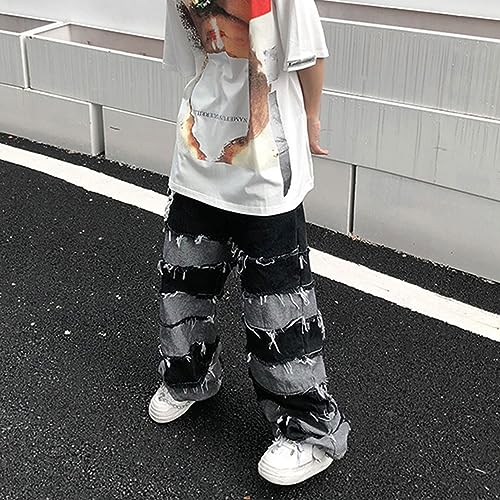 • Match:Y2K baggy jeans denim joggers for men, gothic denim pants, harajuku loose fit pants, graphic vintage jeans for men, men's denim pant straight wide leg trousers are perfect with with leather jackets, plaid shirts, sneakers and even dress shoes. There's no limit to what you can match with casual jeans.