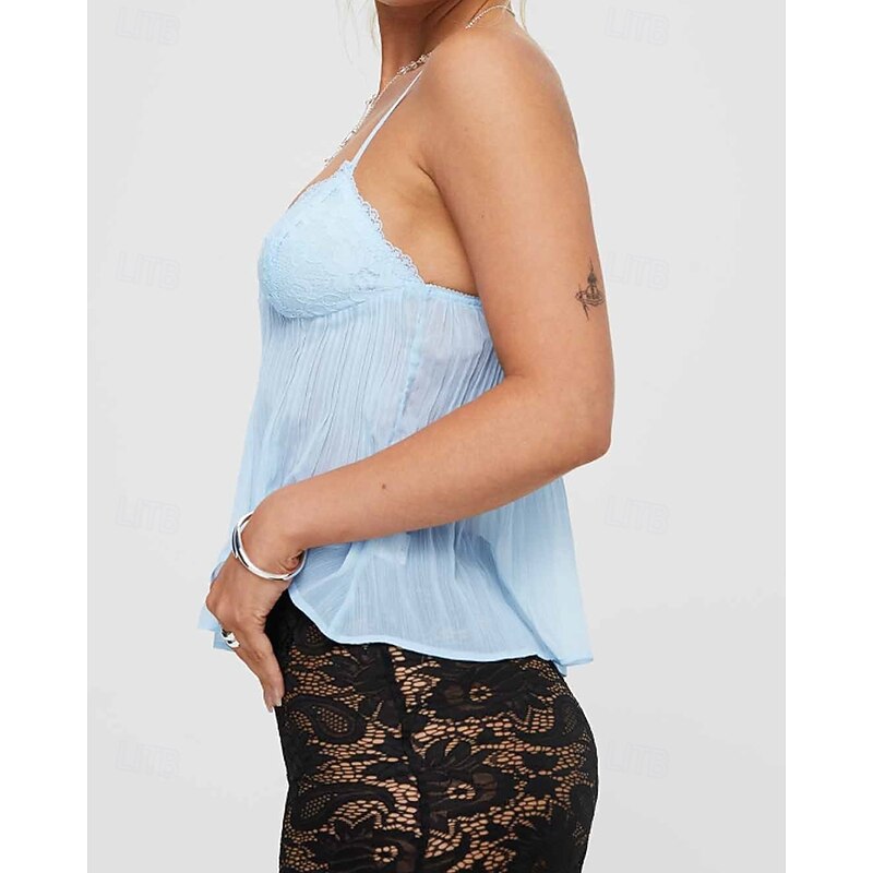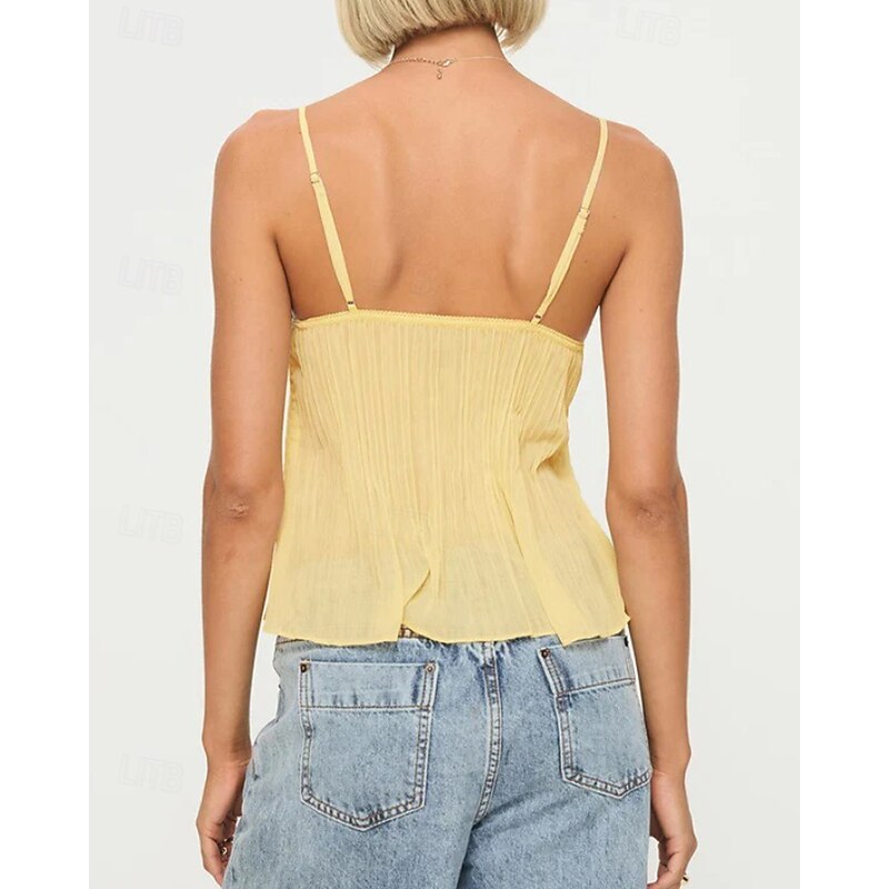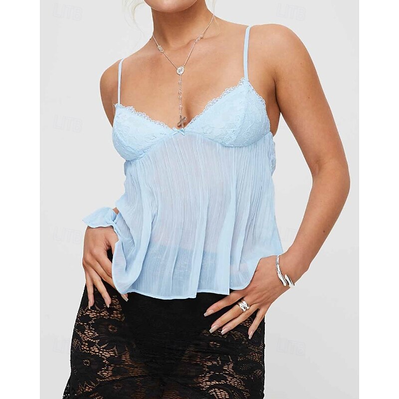 More information about Women's Blouse Camisole Tank Top Plain Modern Casual Sleeveless Strap Regular Tops Daily Holiday Going out Lace Black White Yellow Pink Light Blue Summer