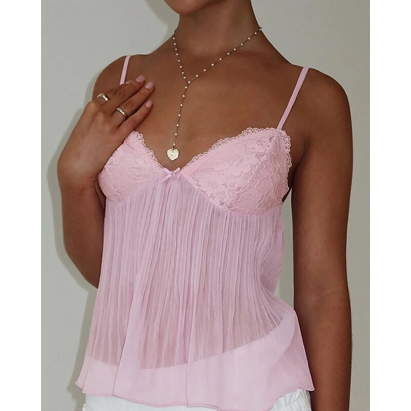 Women's Blouse Camisole Tank Top Plain Modern Casual Sleeveless Strap Regular Tops Daily Holiday Going out Lace Black White Yellow Pink Light Blue Summer 2