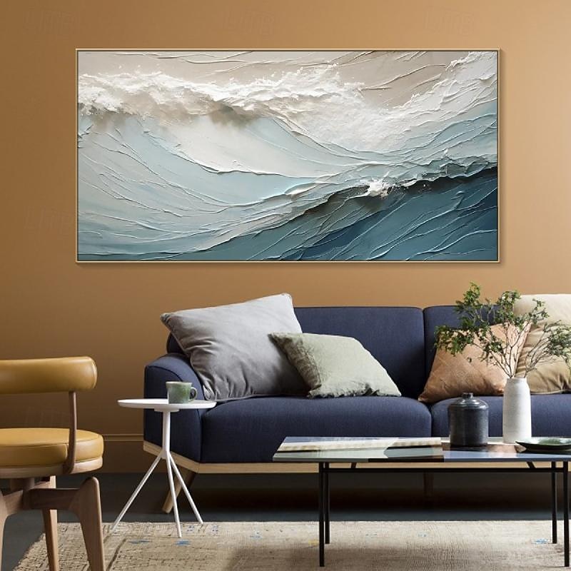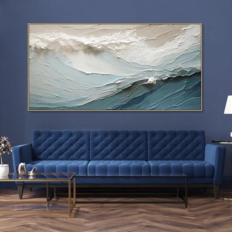 HOT ! Hand painted 3D Textured Painting on Canvas handmade Blue ocean oil painting Minimalist Painting Sea Wave Painting Wabi-Sabi artwork Wall Art painting Morden Art Bedroom Wall Decor Fashion Art