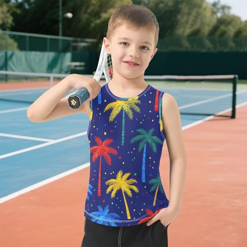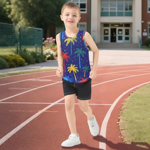 Boys' Tank Top Shirt Palm Trees Dark Blue Background Pattern Sleeveless T-Shirts 5