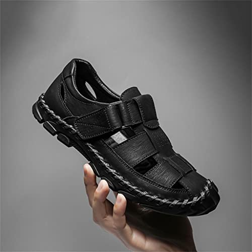 Sandals Men Breathable Leather Casual Shoes Men's Sandal Leisure Flats Retro Beach Shoe(39) 5