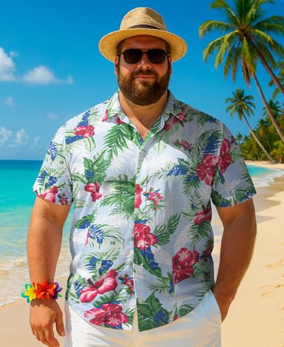 Weecreeture Big and Tall Men's Hawaiian Shirt - Short Sleeve, Tropical Floral Button Down Casual Summer Beach Shirt 6