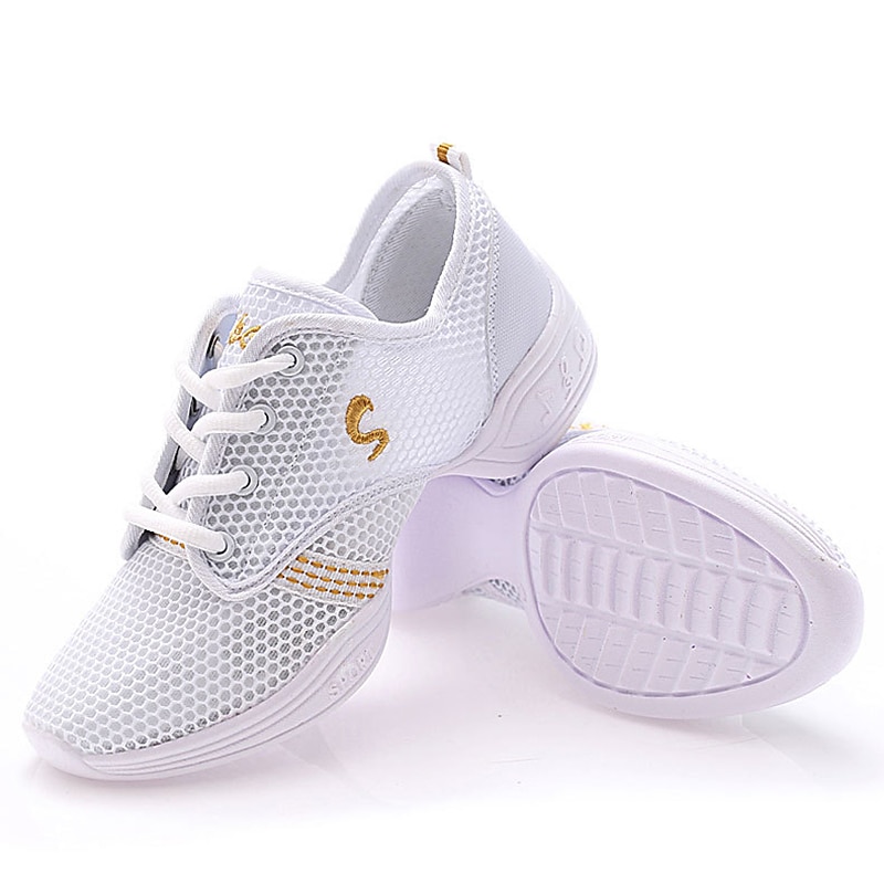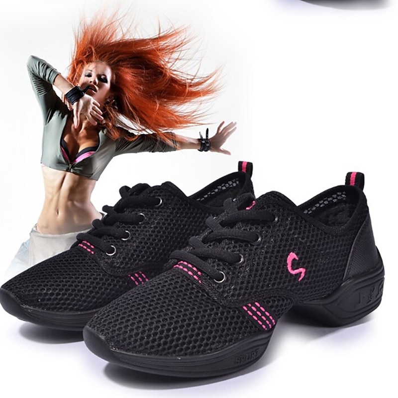 Highlights [Fabric & Material] These women's dance sneakers are crafted from a breathable mesh upper combined with synthetic leather, ensuring superior ventilation and durability. The lightweight construction enhances comfort and supports agility during high-energy activities. [Design Highlights] The sneakers feature a lace-up closure, allowing for a secure and adjustable fit to suit individual preferences. The sleek black design is accentuated with minimalistic detailing, making these shoes a versatile addition to any wardrobe. The durable rubber sole ensures excellent grip and traction, providing stability across various surfaces. [Occasions] Ideal for a range of activities including jazz, Zumba, hip-hop performances, and fitness workouts, these sneakers offer the perfect blend of style and functionality. Whether for practice sessions or dance performances, they are designed to meet the demands of both casual and athletic wear. [Silhouette & Fit] Designed with a low heel type, the sneakers offer a plush 1.57-inch heel height, providing support without compromising on mobility. The construction of these shoes emphasizes a balance between form and practicality, ensuring comfort over prolonged use. [Size Range] Available in a wide range of sizes, from US1.5 / EU31 / UK0.5 to US9.5-10 / EU41 / UK7.5-8, these sneakers cater to various foot sizes and preferences, ensuring the perfect fit for every user. Perfect for everyday use. first-class materials and excellent craftsmanship ensure long-lasting durability.