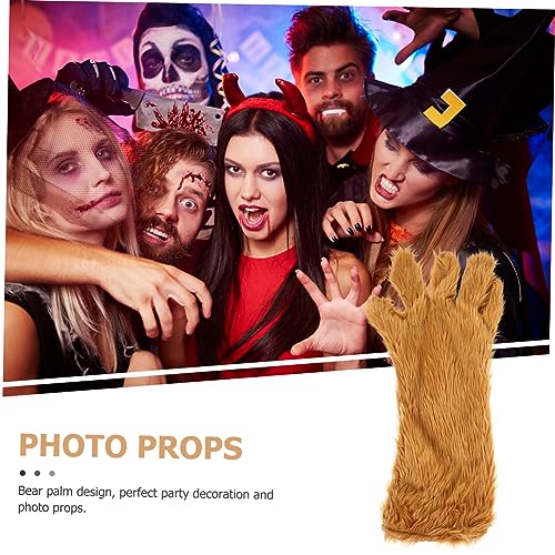 Hemoton Brown Plush Bear Palm Glove Thick Warm Cosplay Masquerade Photo Prop for Party Decoration and Costume Use 4