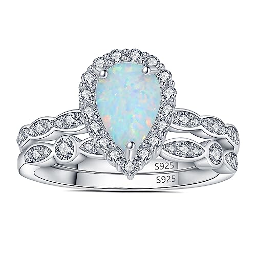 • √HIGH-QUALITY CREATED OPAL 925 STERLING SILVER RING SET: Ring for women is made of solid S925 sterling silver, known amongst jewelry wearers for its strength, brightness, and shine.Sterling silver in our wedding bands is tarnish-resistant, ensuring there is no tarnish residue on the skin. Rhodium plating provides a long-lasting luster and makes anillos de plata 925 women tarnish resistant! Completely allergy-free, nickel-free, lead-free, and cadmium free to prevent irritation.