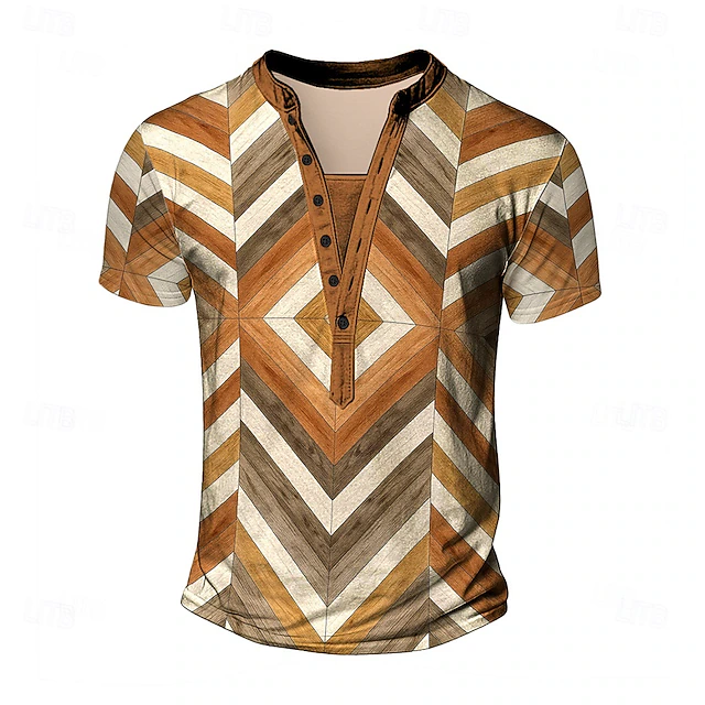 More information about Men's Chevron Ethnic T Shirt Henley Shirt Tee Short Sleeve Designer Basic Ethnic Outdoor Casual Daily Summer All Seasons Blue Green Khaki Henley Henley T-Shirt