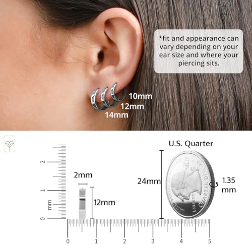 14K Solid White Gold Huggie Earrings for Women | Hypoallergenic Domed or Flat Style Small Hoop Earrings in Sizes 10mm, 12mm & 14mm | Small Gold Hoops for Men & Women by MAX + STONE 6