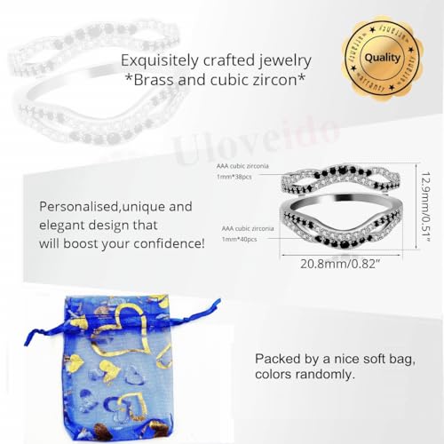 HOT ! Uloveido Platinum Plated Wedding Engagement Anniversary Promise Rings Enhancer Infinity Rings Enhancer for Women with Black White Cubic Zirconia Created Diamond Ring Y444