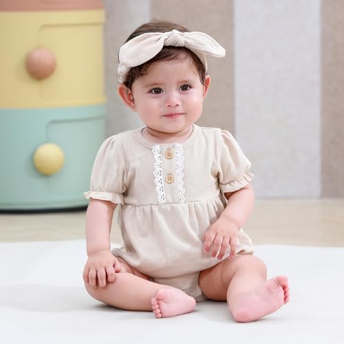 • Design: These Baby Short Sleeve Bodysuits with hats, making your little one look more cute and elegant. Perfect for daily wear, family gathering, beach, photography, wedding and special occasion.