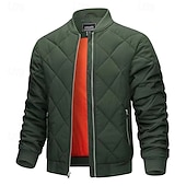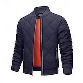 More information about Men's Winter Coat Quilted Jacket Parka Pocket Polyster Pocket Vacation Daily Wear Date Regular Fashion Casual Comfortable Thermal Warm Fall Winter Solid / Plain Color Wine Black Navy Blue Green