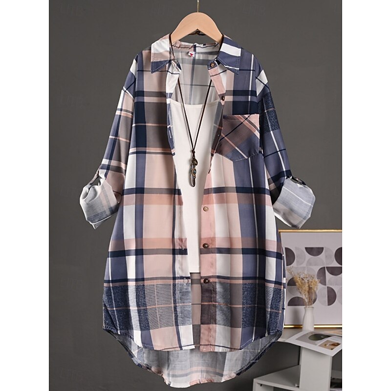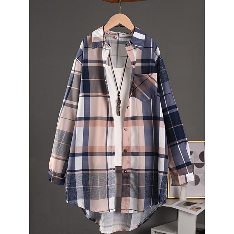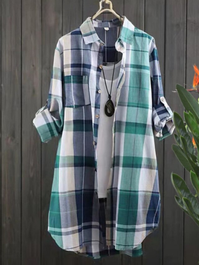 Women's Shirt Button Down Blouse Plaid Tropical Stylish Casual Long Sleeve Shirt Button Down Blouse Collar Long Tops Daily Pocket Buttons Print Yellow Green Khaki Spring Fall 13