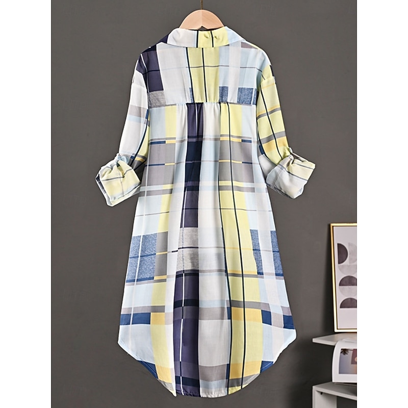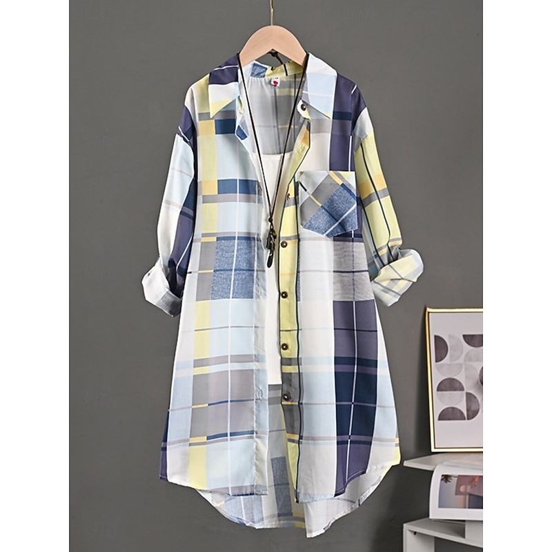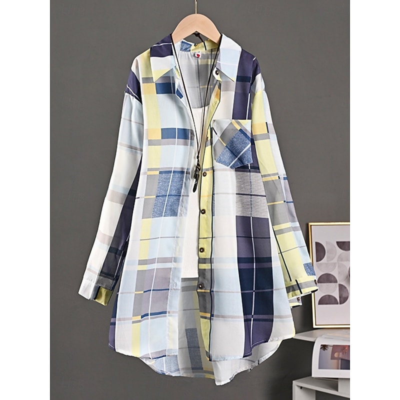 More information about Women's Shirt Button Down Blouse Plaid Tropical Stylish Casual Long Sleeve Shirt Button Down Blouse Collar Long Tops Daily Pocket Buttons Print Yellow Green Khaki Spring Fall