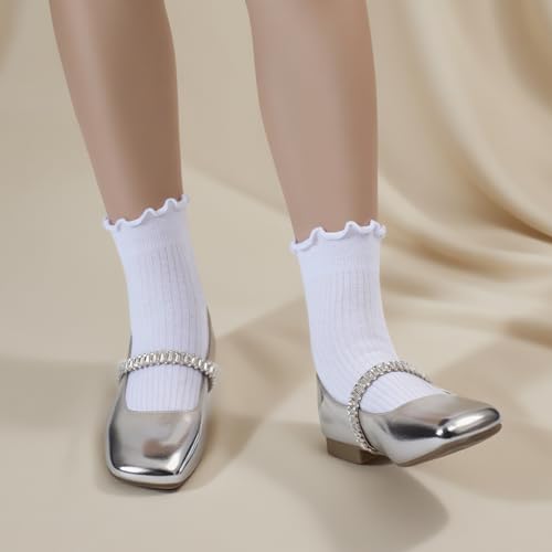 6 Pairs Cotton Ruffle Socks Women, Cute Breathable Frilly Casual Ankle Socks