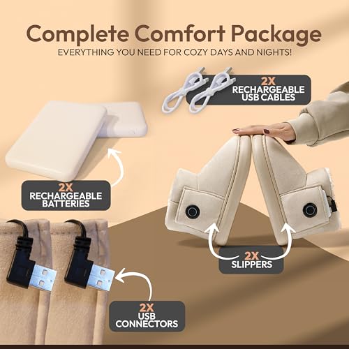 HOT ! Heated Slippers for Women, Snow Resistant Foot Warmer Shoes For Women, Heated Boots, 3 Temperature Settings, Rechargeable 5000mAh Batteries, Heated Booties for Everyday Wear, Beige
