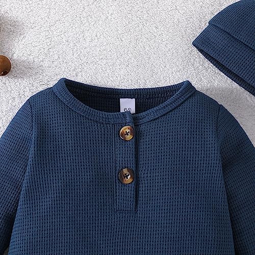 • Baby Hospital Outfit -- This 2pcbaby clothes features a hat, long sleeves,buttons,waffle,solid color, and a round neck, making it a trendy and versatile option for fall and winter outfits.