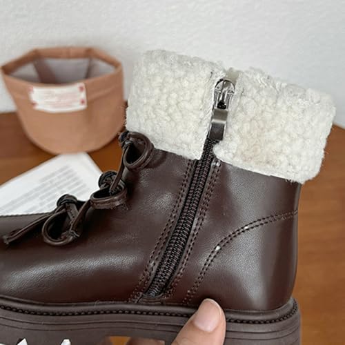 Fashion Big Kids Winter Combat Boots with Fleece Lined Waterproof Warm Side Zipper Comfortable Chunky Snow Shoes 6